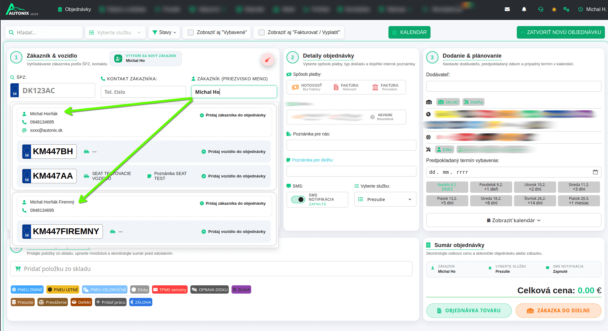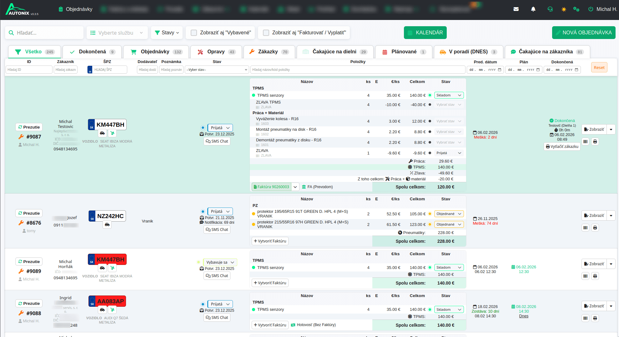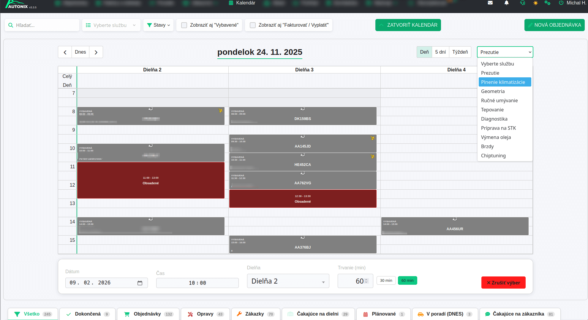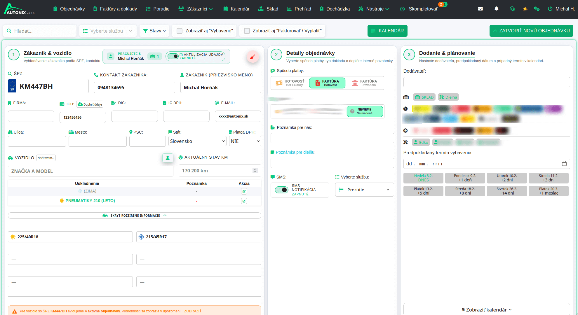 s automatickým napojením na kalendár, dielne, objednávky.