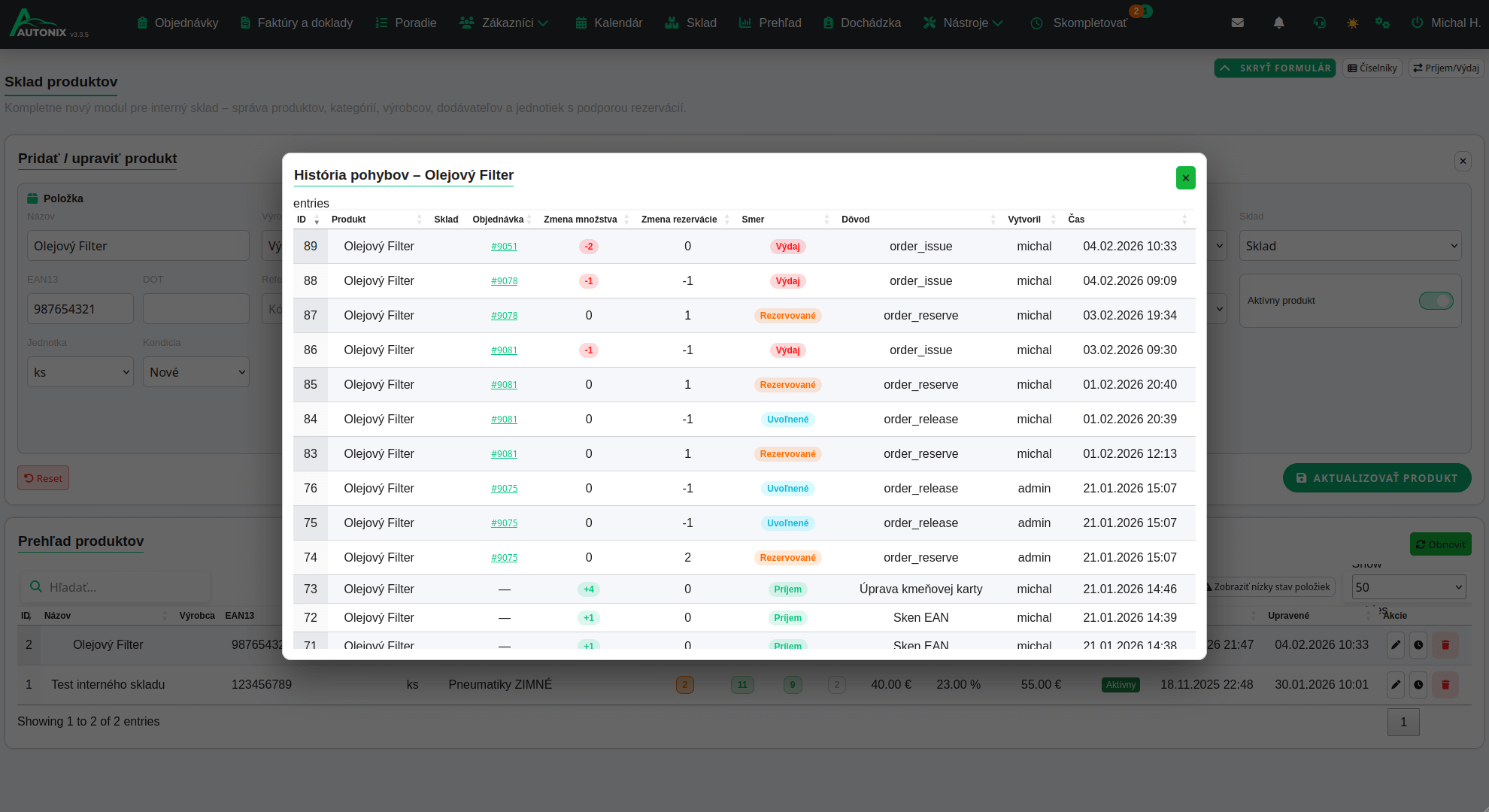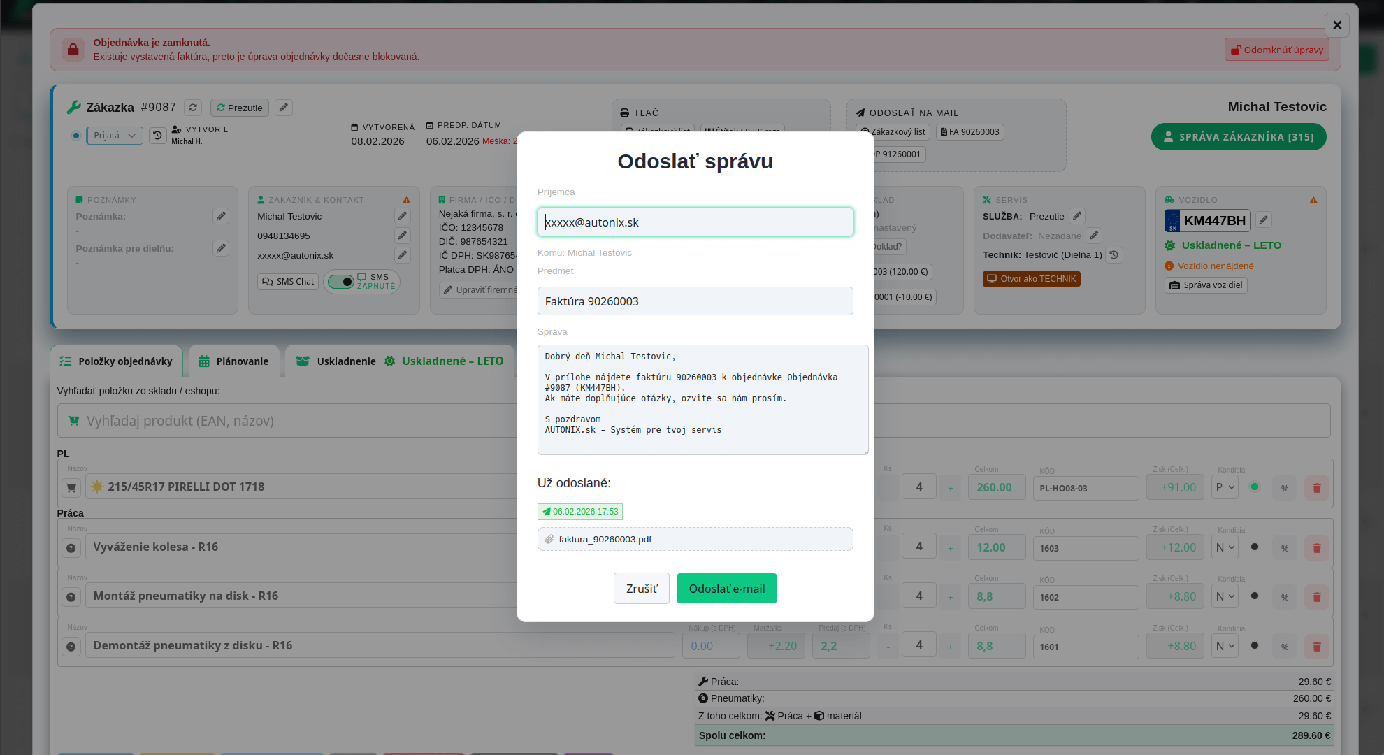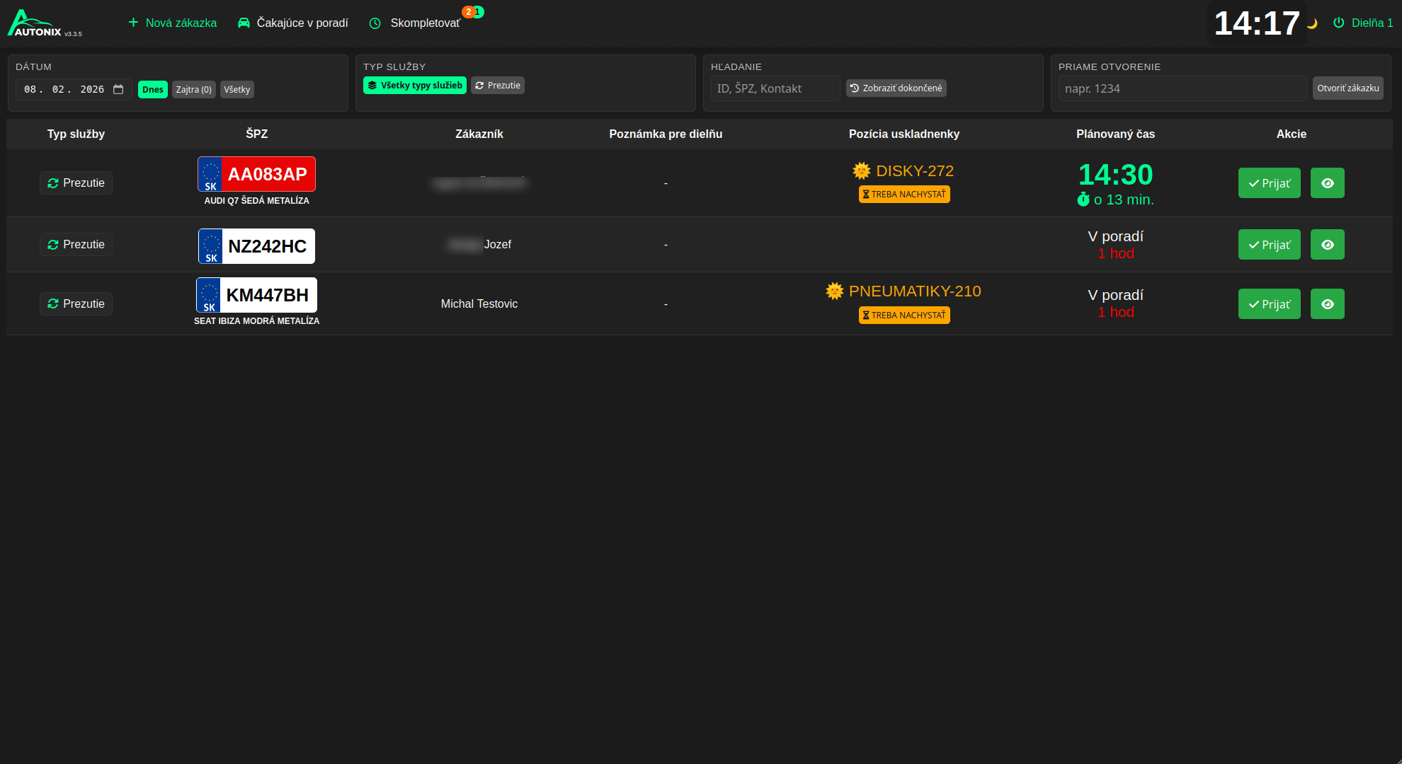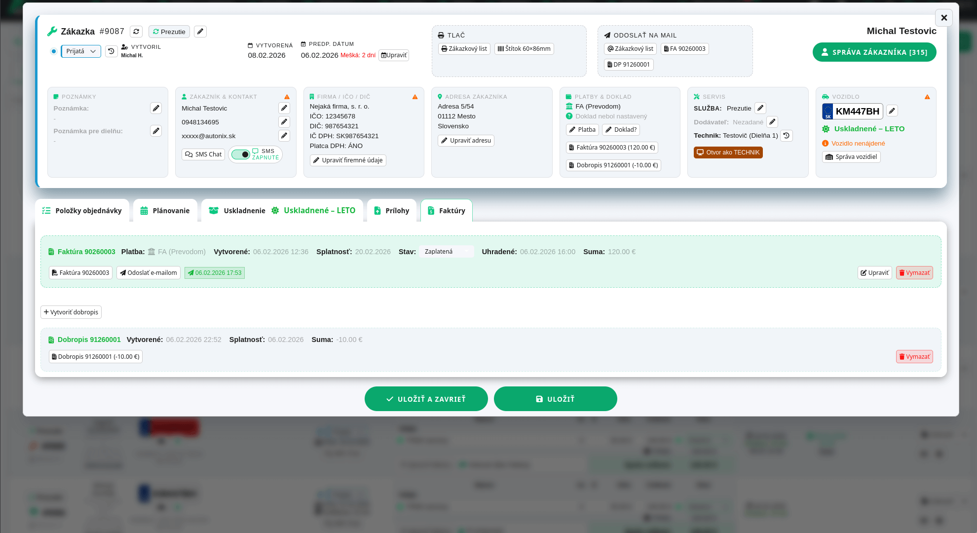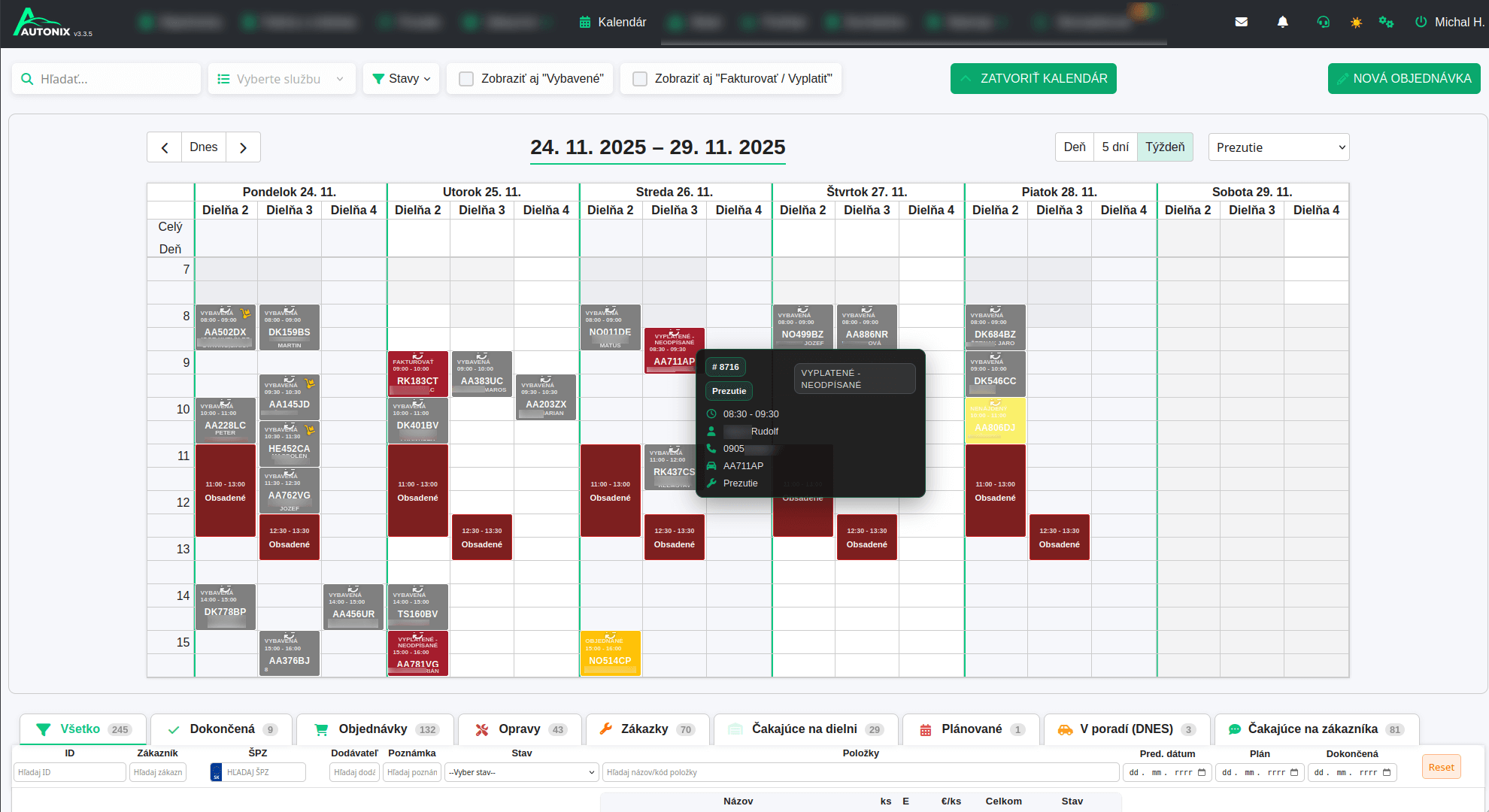 s automatickým napojením na kalendár, dielne, objednávky.