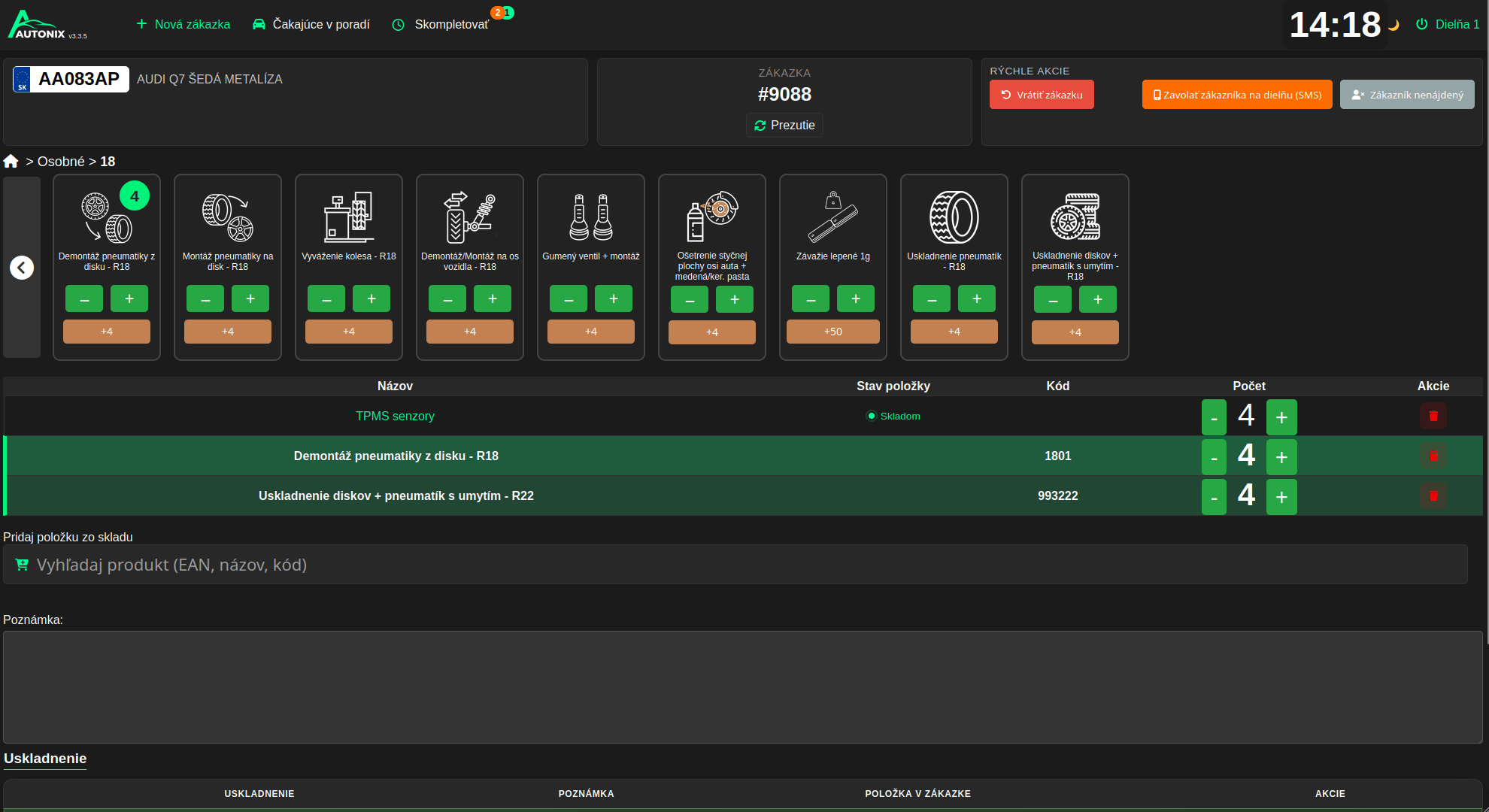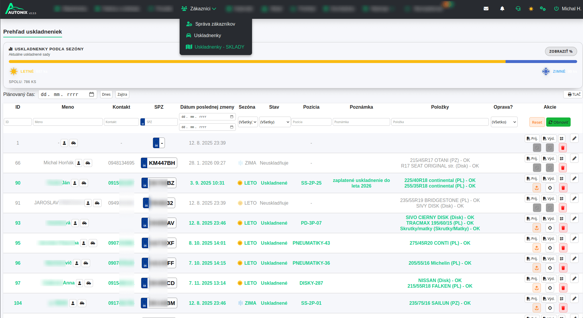 Evidencia uskladnených pneumatík pomocou QR kódov
