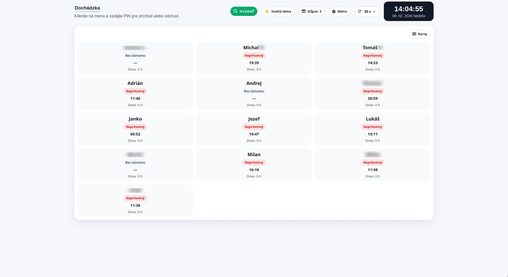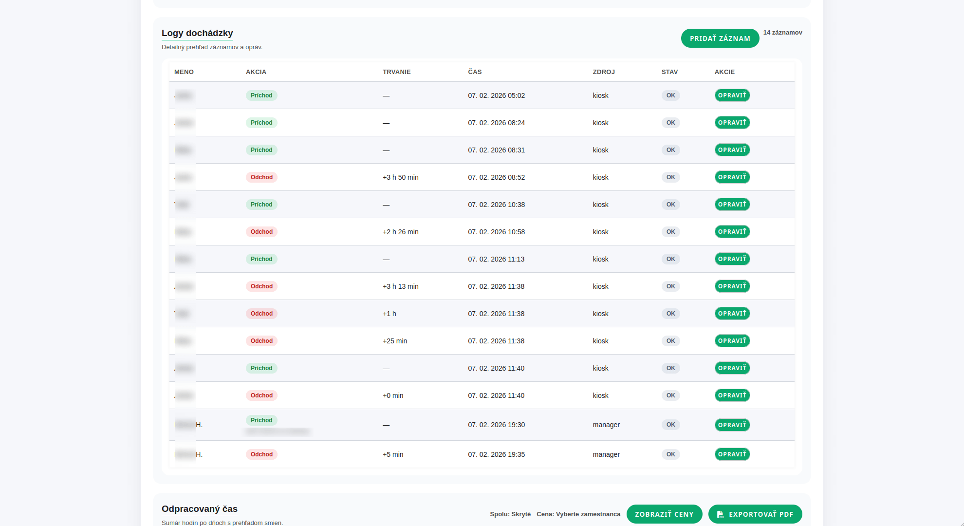 Evidencia príchodov a odchodov zamestnancov