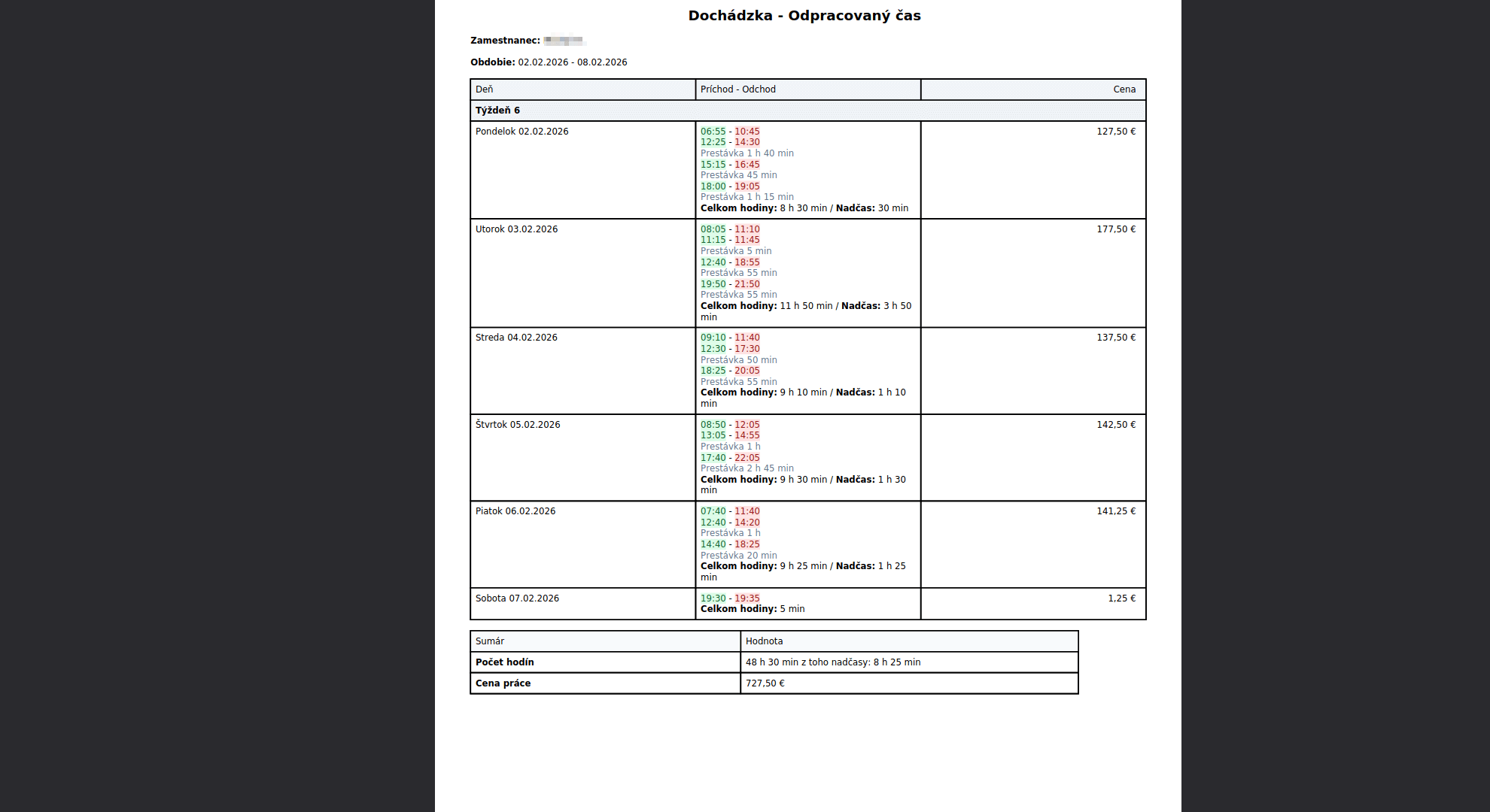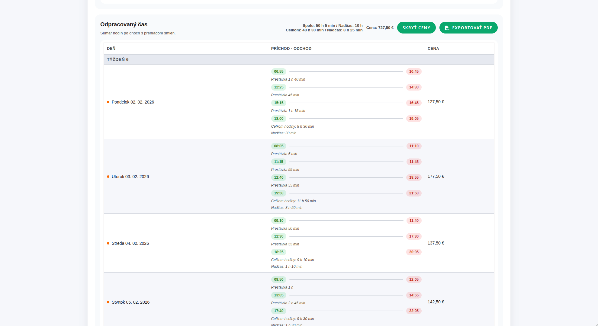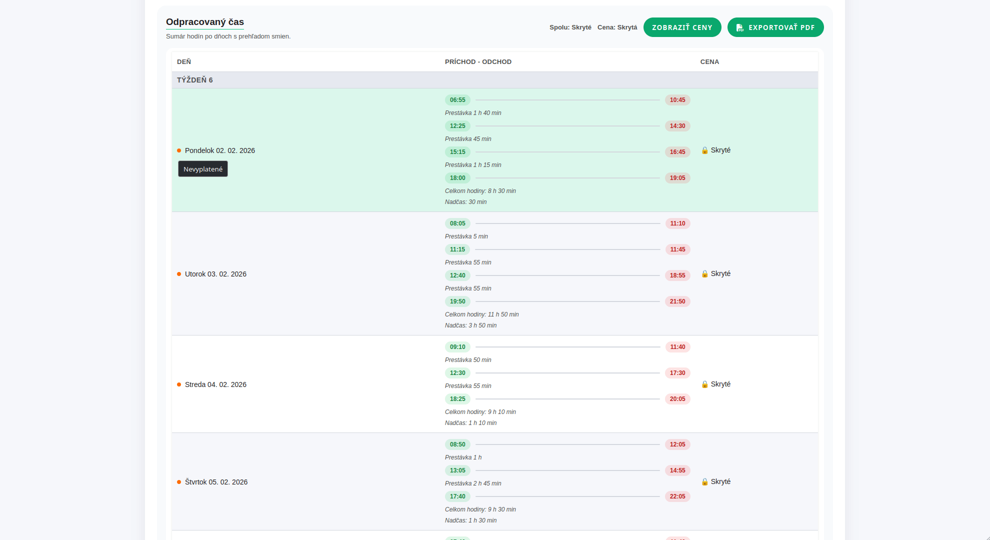 pre lepší prehľad o pracovnom čase.