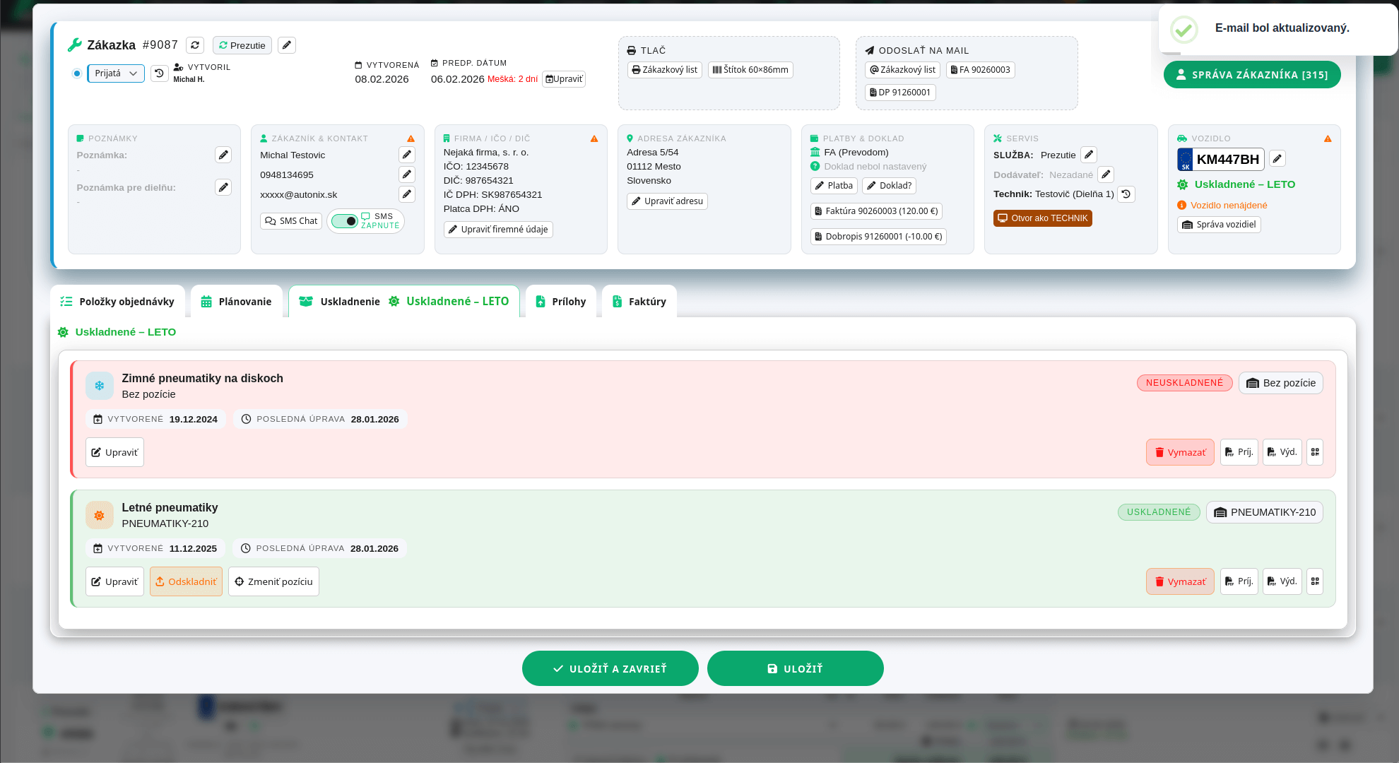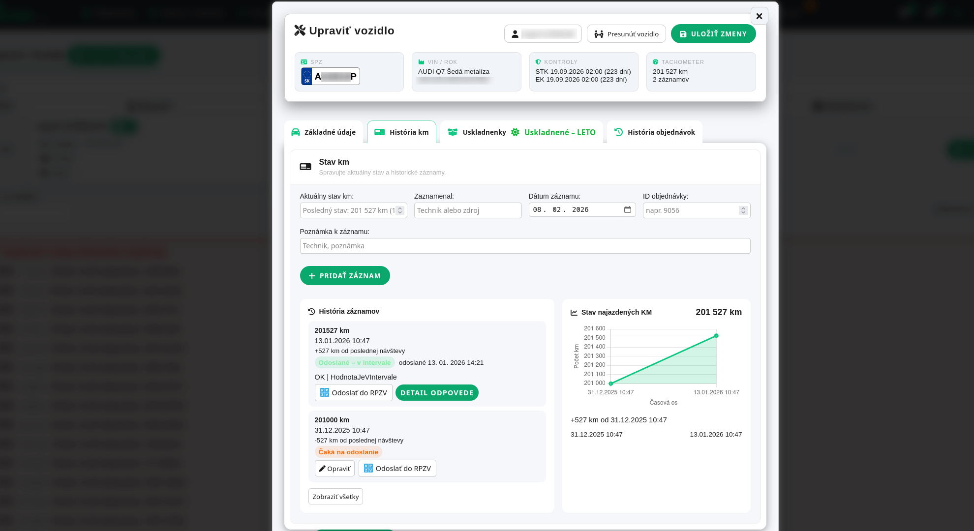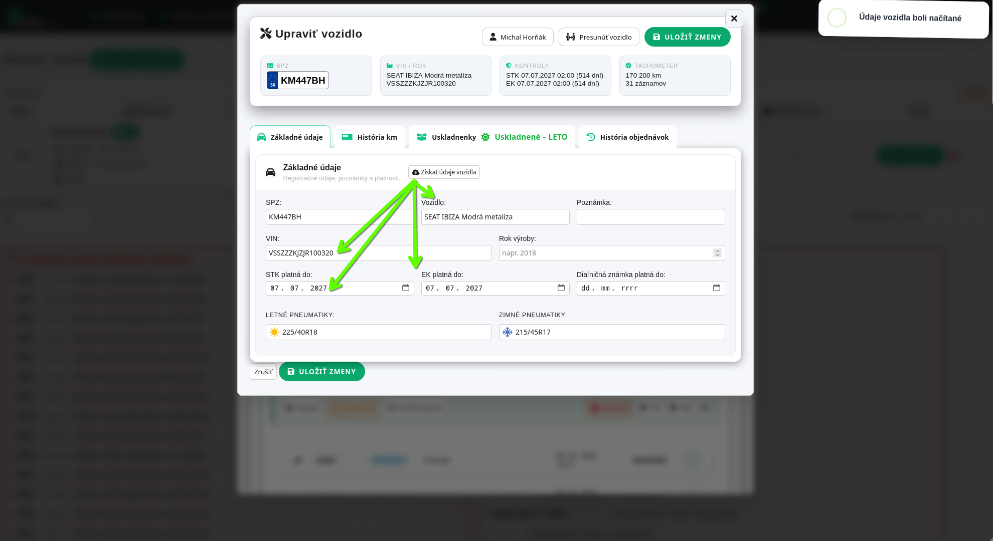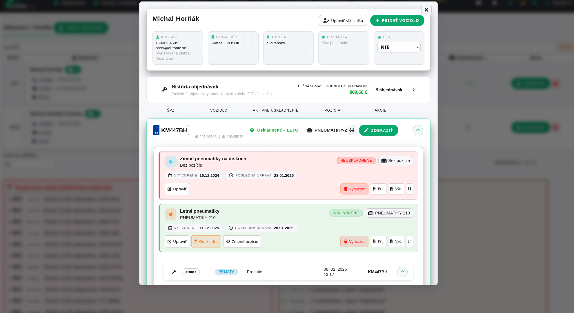 Evidencia vozidiel zákazníkov s prepojením na zákazky,